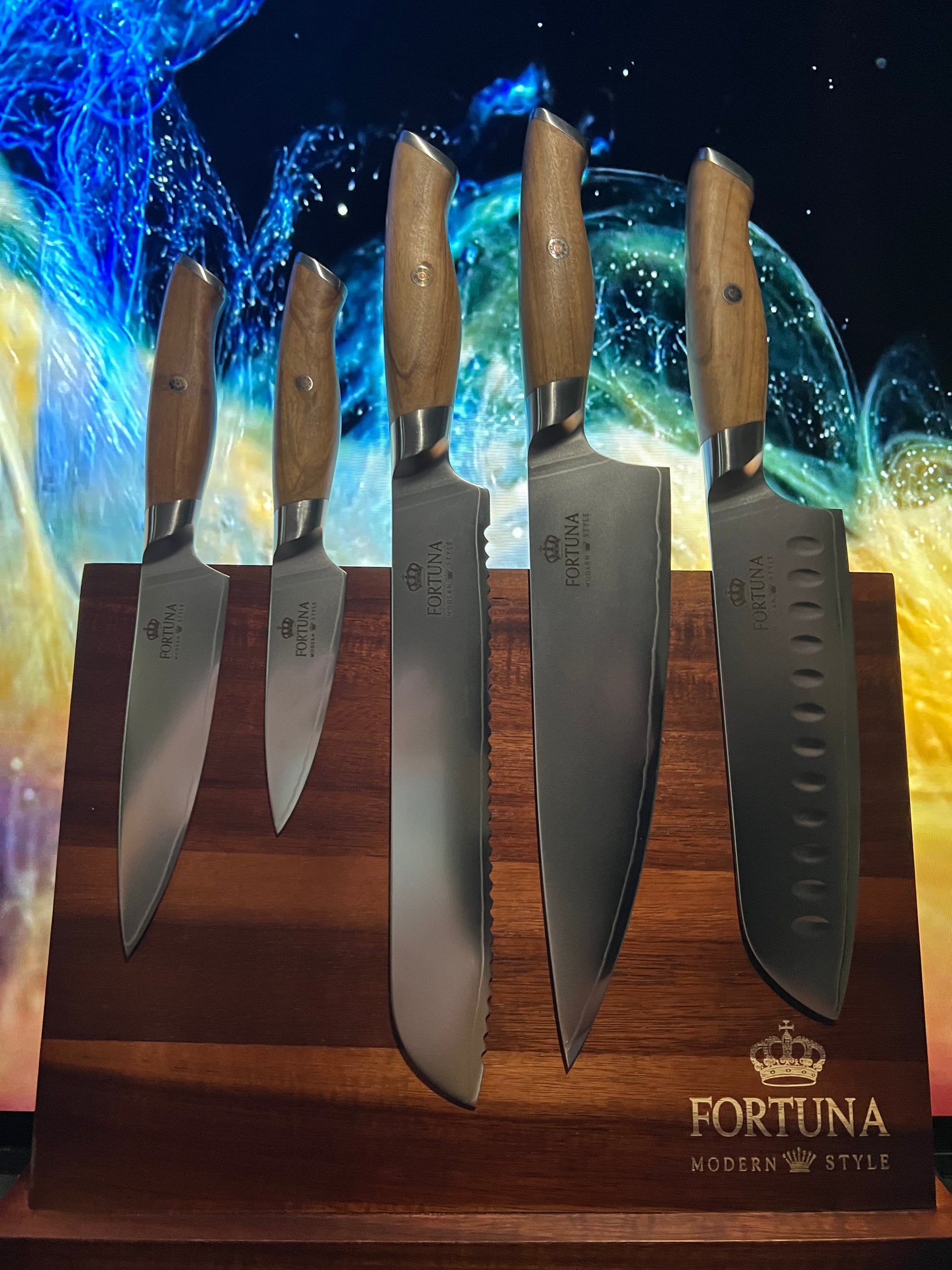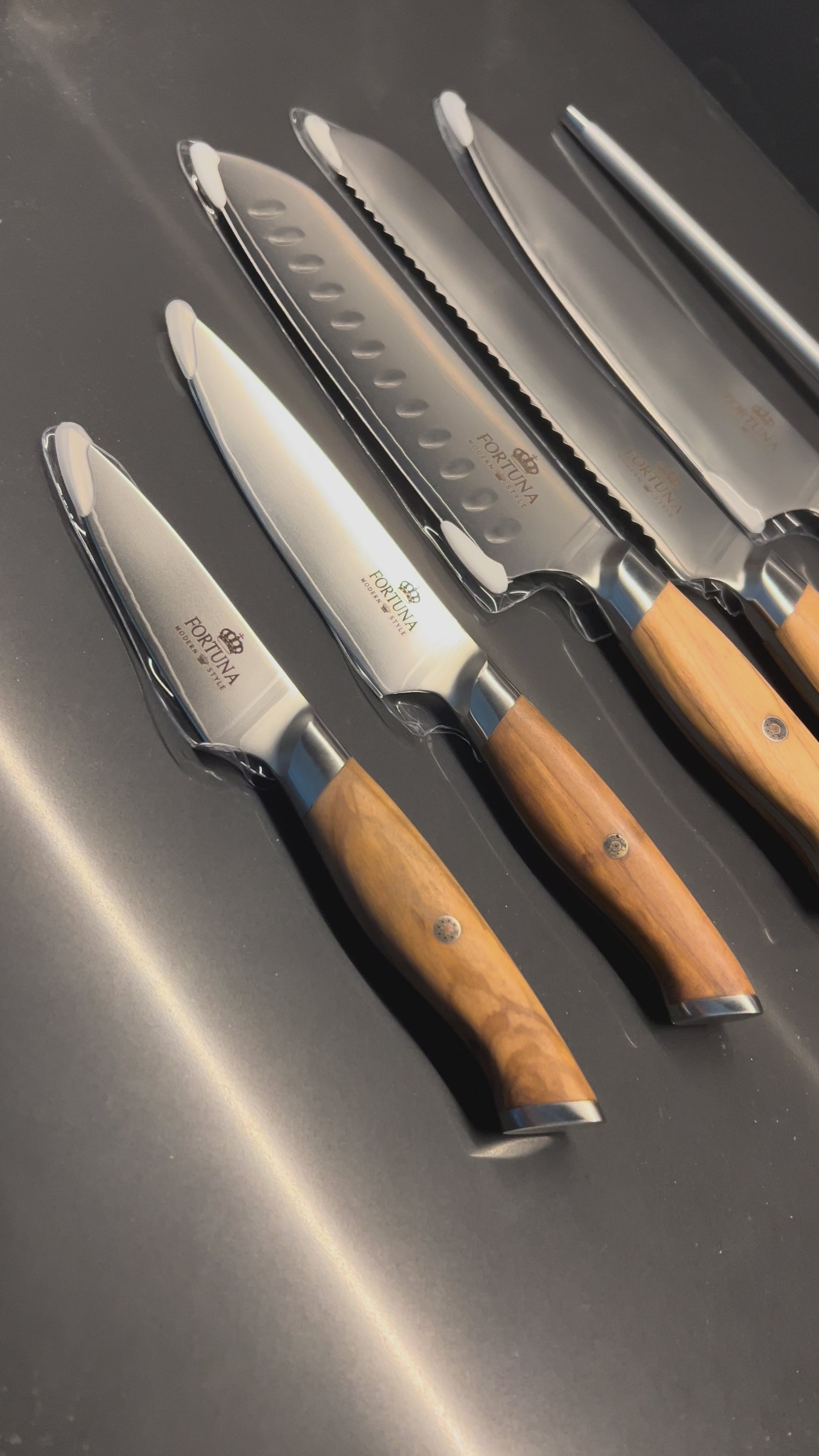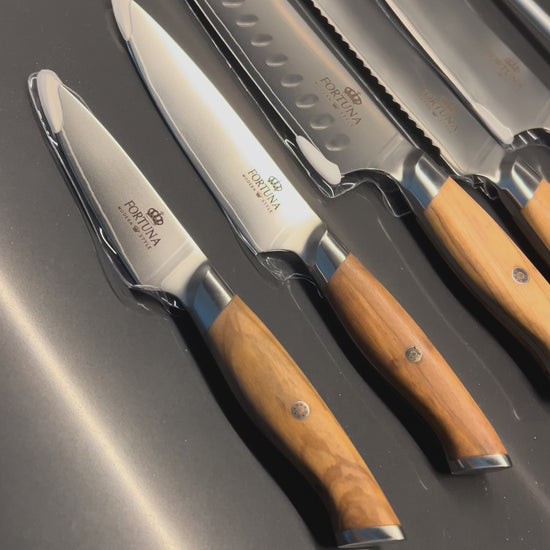 Įsigykite funkcionalumo, grožio ir meistriškumo derinį savo virtuvei su šiuo aukščiausios kokybės peilių rinkiniu.