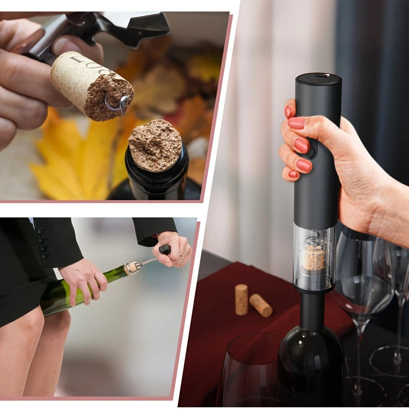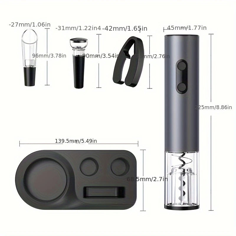 Automatinis Vyno Atidarymo Rinkinys – 5 dalių Komplektas su Pilstytuvu ir Vakuuminiu Kamščiu