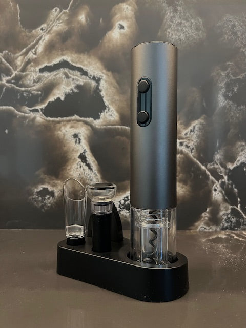 Atraskite patogumą ir eleganciją su šiuo 5 dalių vyno aksesuarų rinkiniu, kuris ne tik palengvins vyno atidarymą, bet ir padės išlaikyti jo šviežumą. Tai būtinas įrankių komplektas kiekvienam vyno mėgėjui – tiek kasdieniam naudojimui, tiek dovanai.