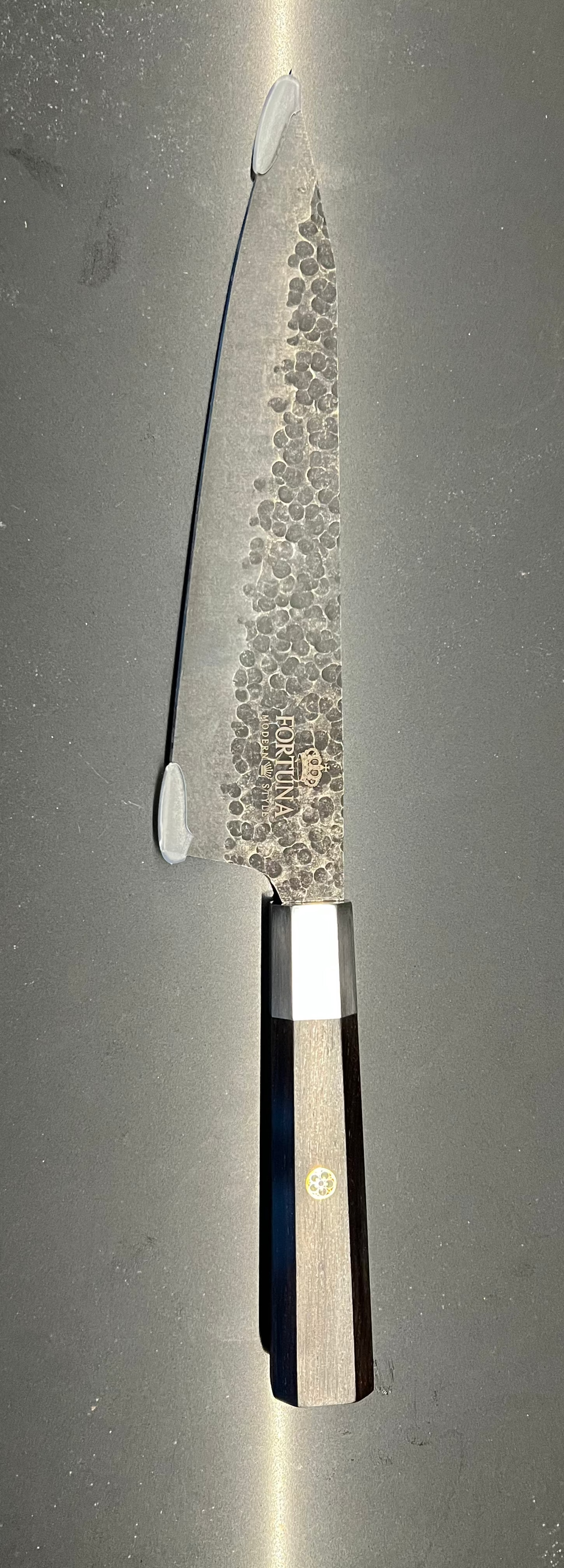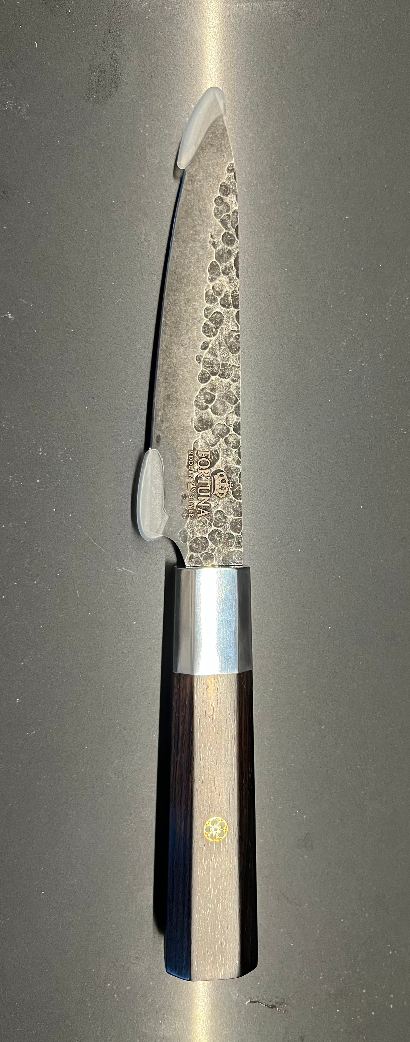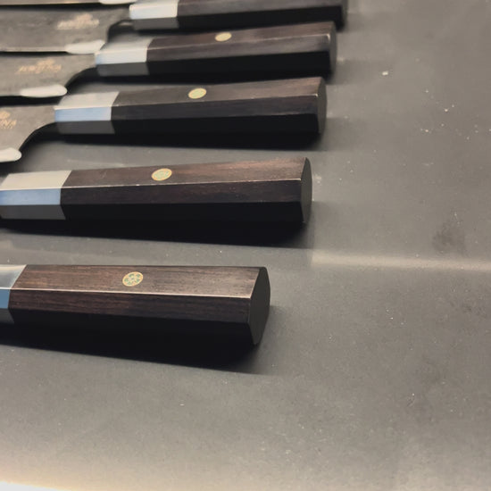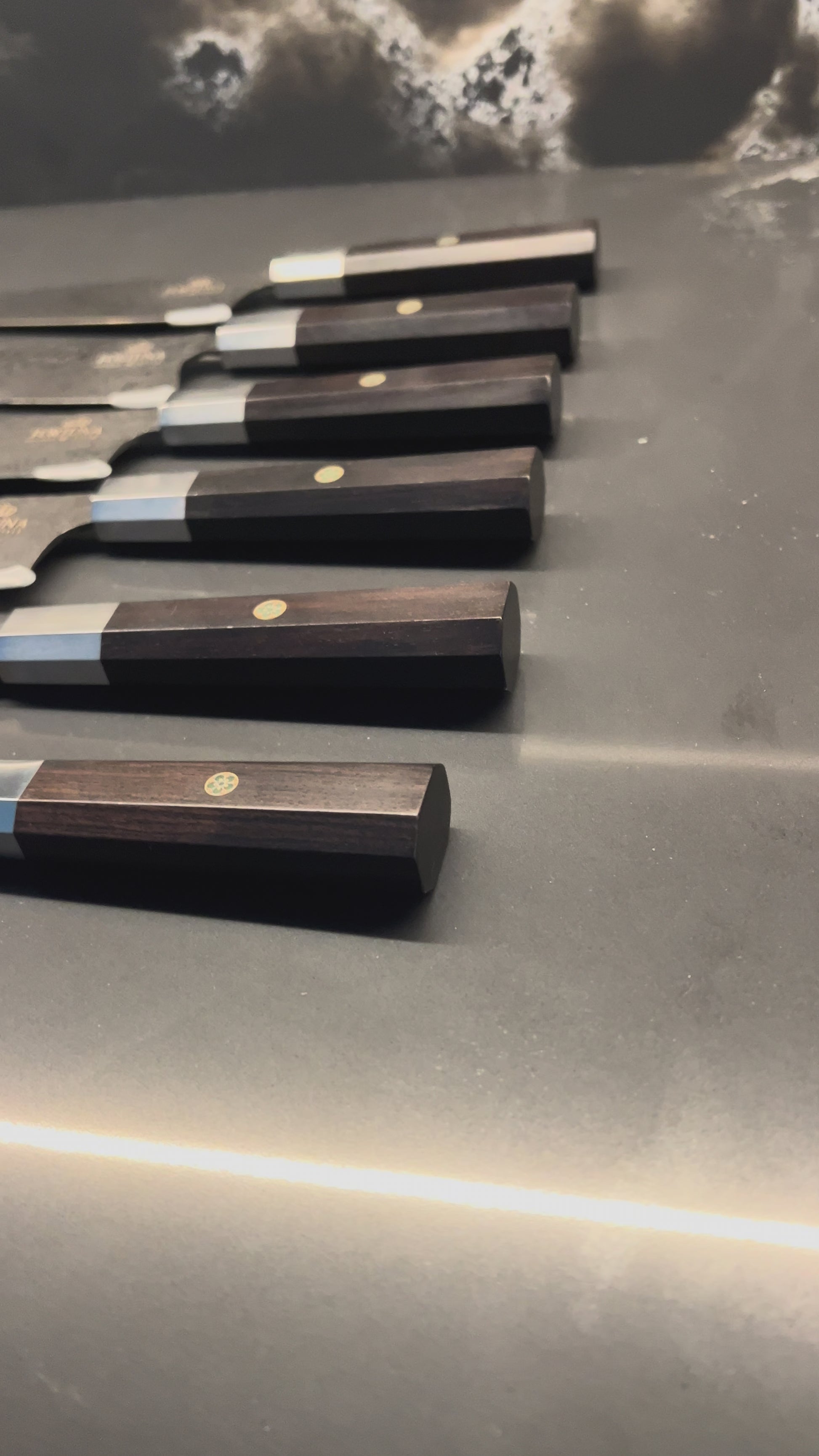 Atraskite tradicijos ir modernumo dermę su šiuo elegantišku virtuvinių peilių rinkiniu, kuriame dera aukštos klasės San Mai plienas ir klasikinio stiliaus aštuonkampės rankenos iš juodmedžio ir raudonmedžio. Puikiai subalansuotas funkcionalumas, patvarumas ir estetika – profesionalams bei mėgėjams.