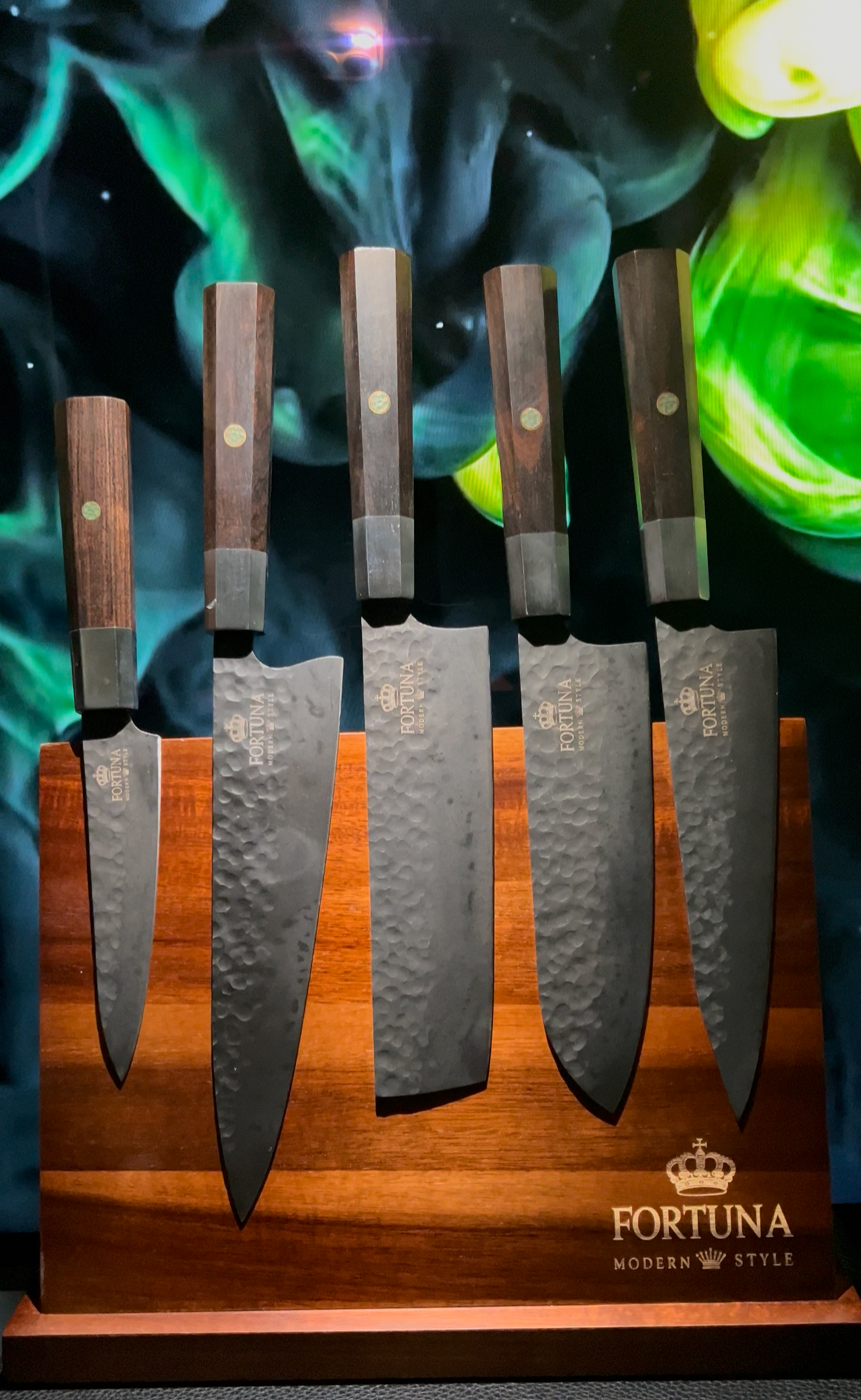 FORTUNA 6 dalių Virtuvės Peilių Rinkinys su Klasikinėmis Aštuonkampėmis Medžio Rankenomi