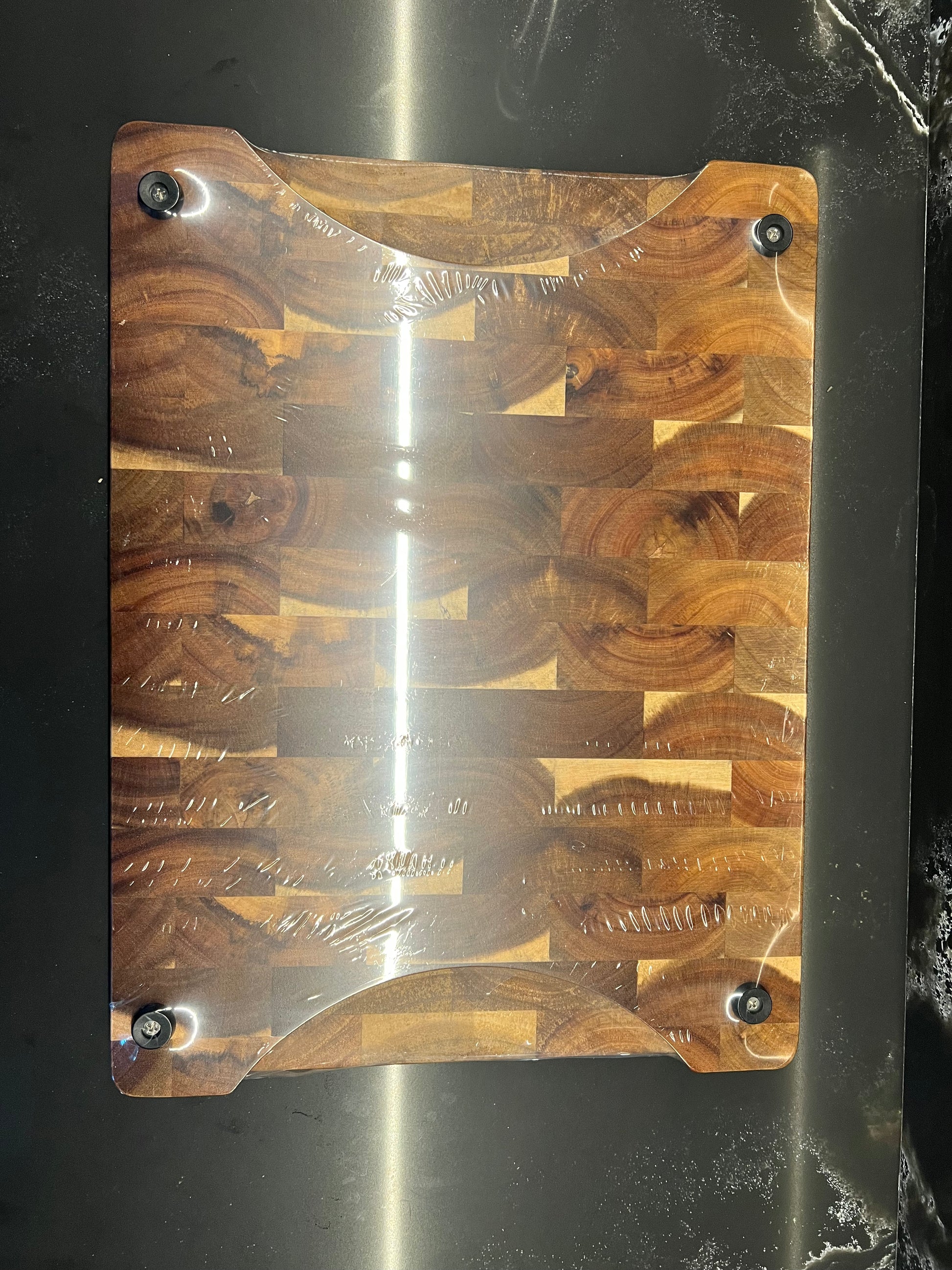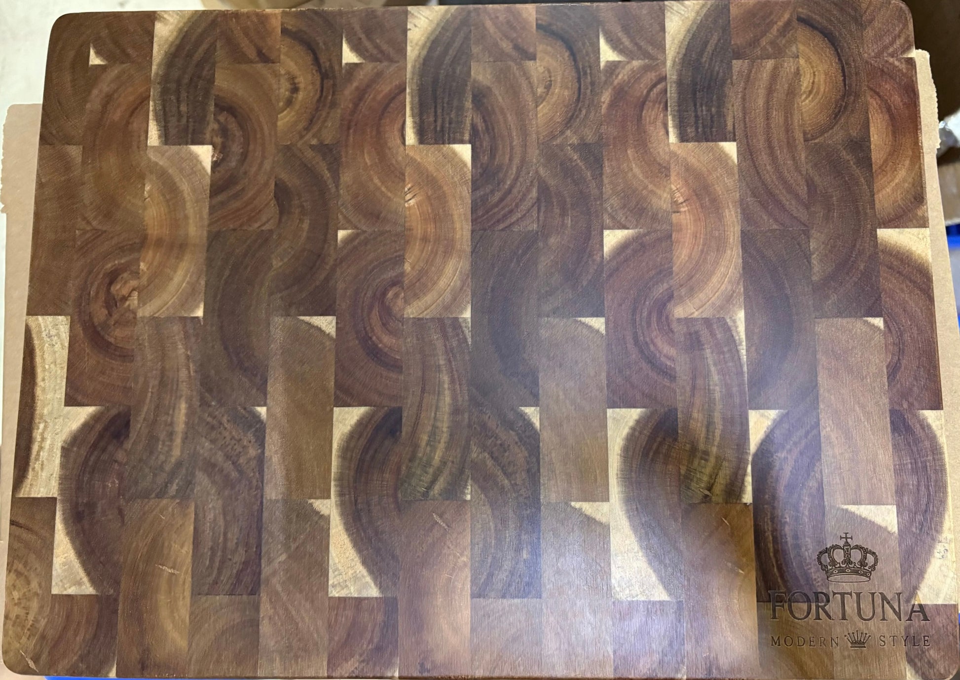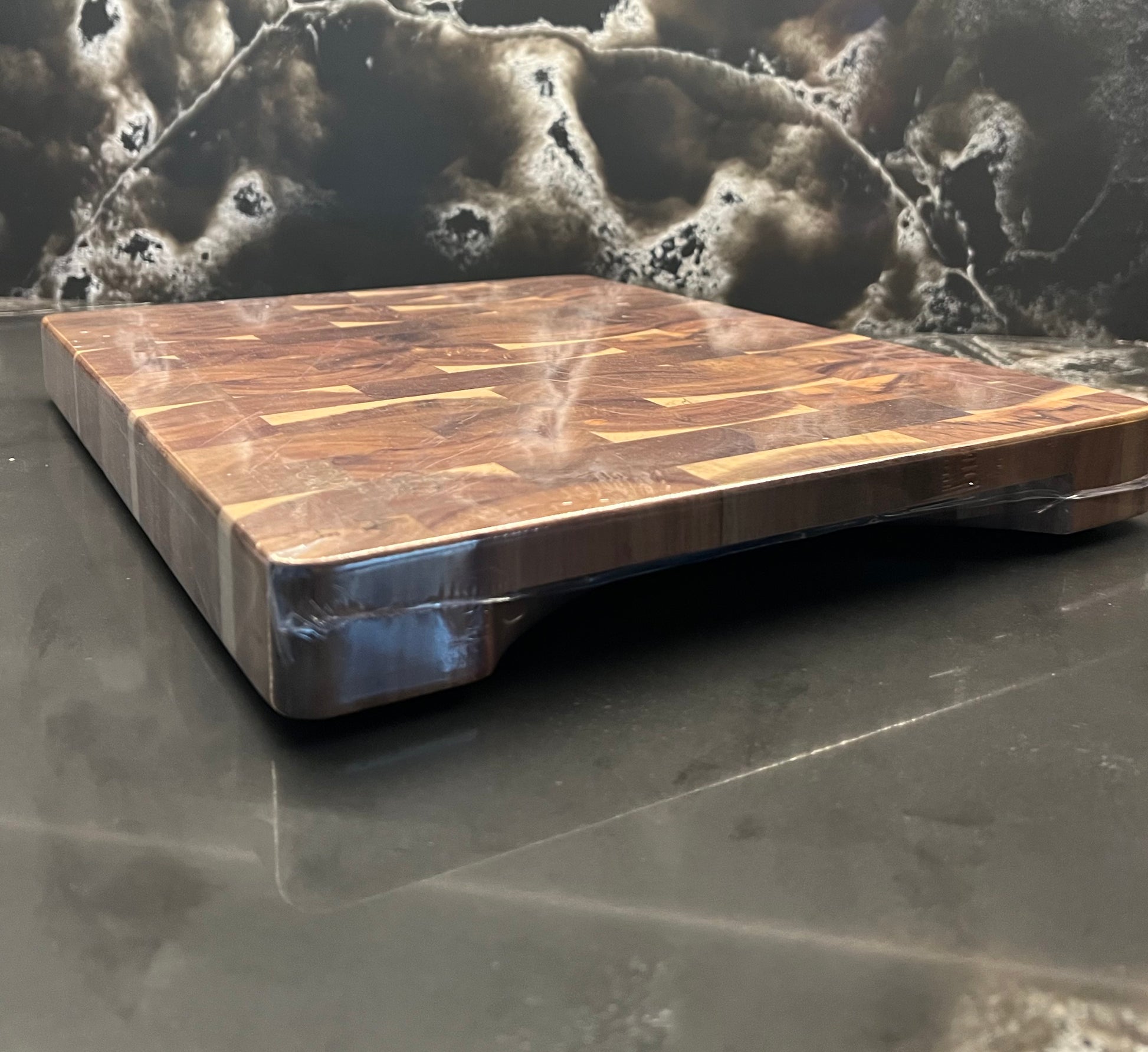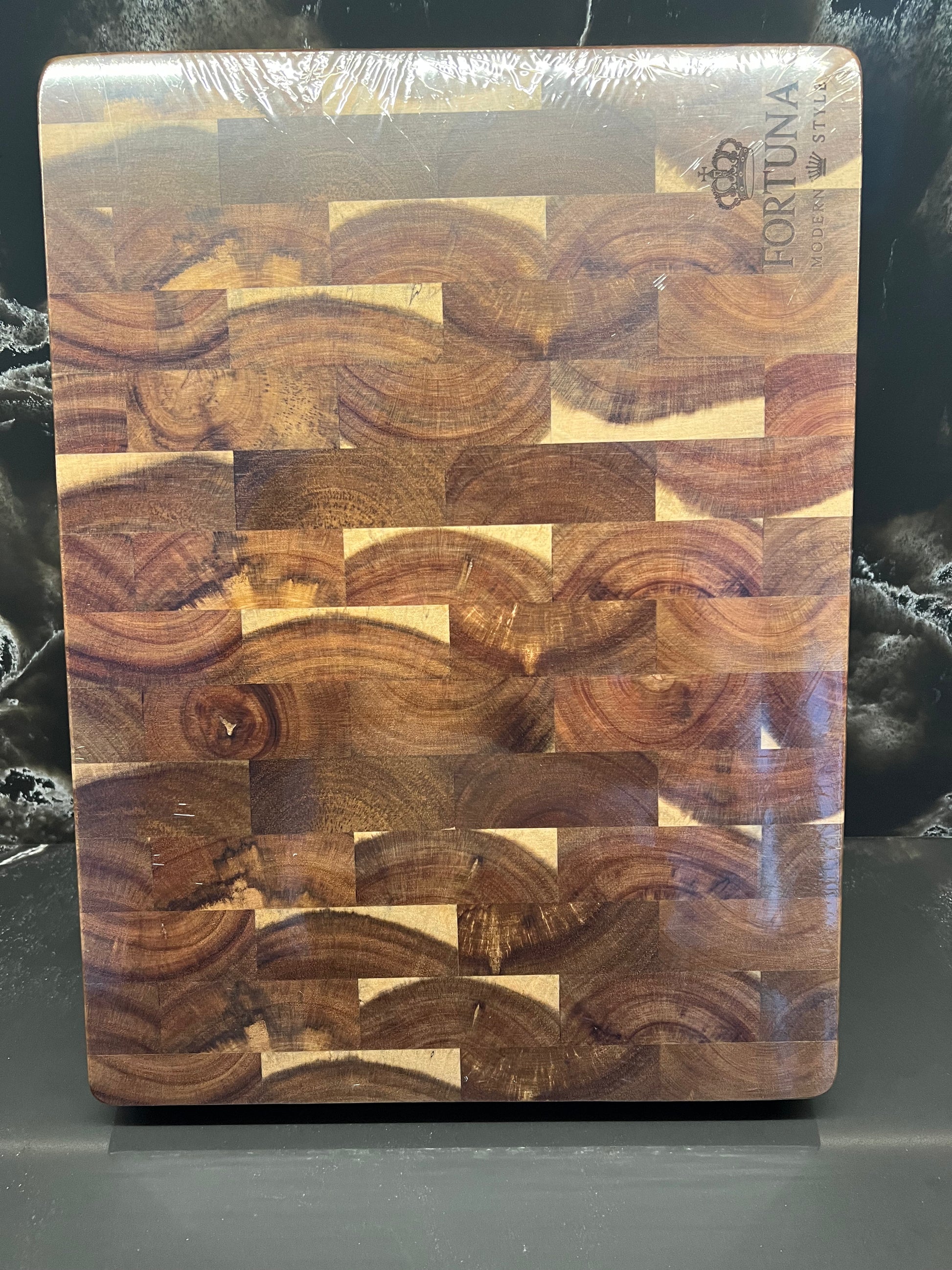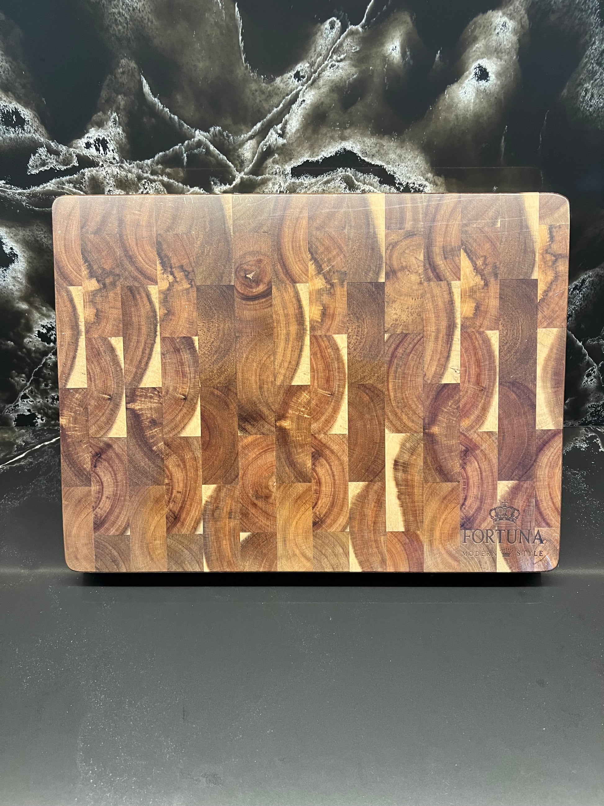 FORTUNA End Grain Virtuvinė Pjaustymo Lenta su Rankenomis – Iš Gintarinio Akacijos Medžio