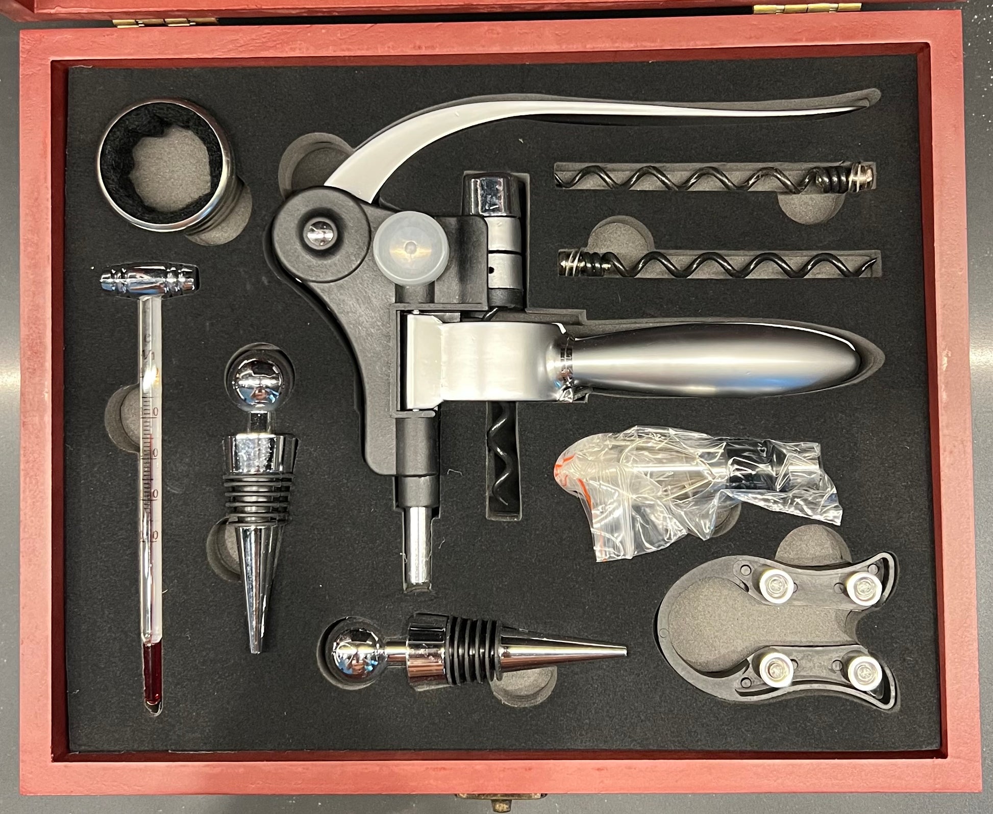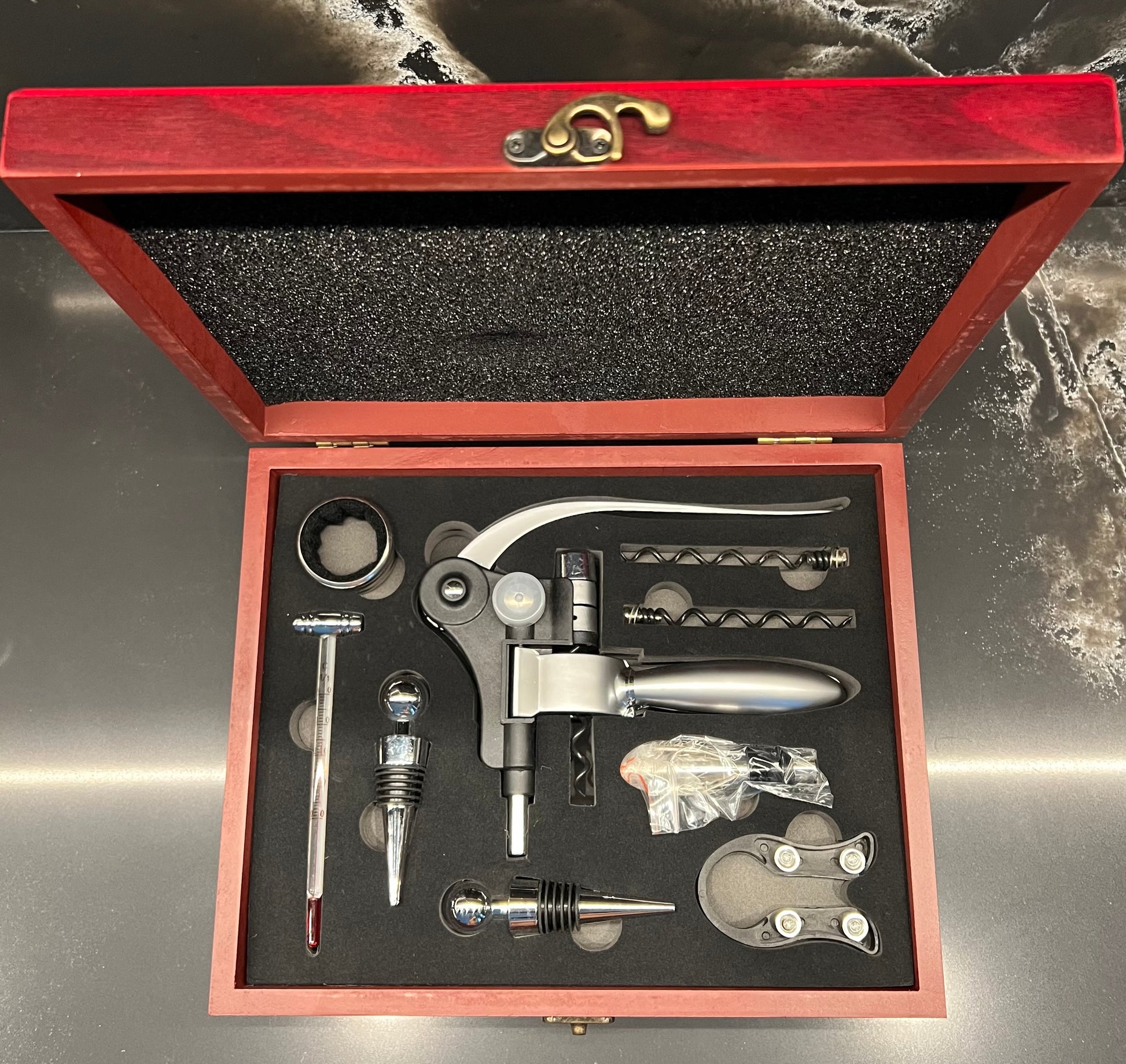 Universalus ir elegantiškas 9 dalių vyno atidarymo rinkinys – viskas, ko reikia tikram vyno mėgėjui ar dovanai. Pagamintas iš kokybiškų medžiagų, šis rinkinys leidžia lengvai ir stilingai atidaryti, patiekti bei išsaugoti vyną.